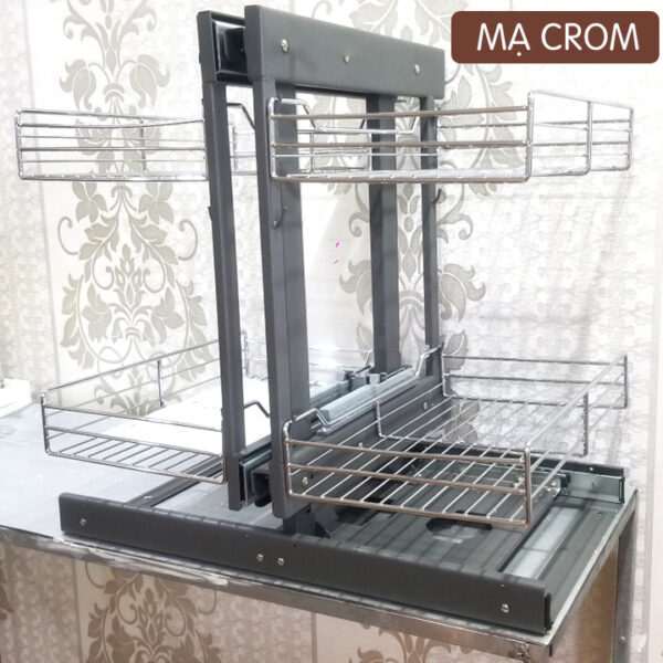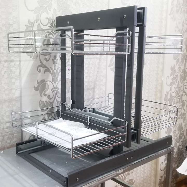 Kệ Góc Liên Hoàn Tủ Bếp Dưới là giải pháp hoàn hảo giúp tiết kiệm không gian nhà bếp của bạn một cách hoàn hảo. Được làm bằng mạ crom hoặc kính cường lực với kết cấu khung dày, chắc chắn. Có thể dùng để đựng chai lọ gia vị, xoong nồi, hộp ngũ cốc,…